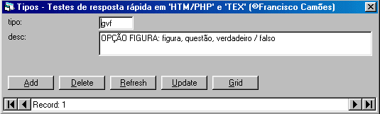 Acesso a registos da tabela de tipos de questões. Os tipos de questões codificadas são: