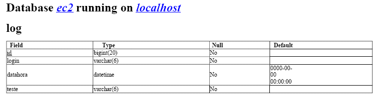 O ficheiro 'ec2.sql' permite criar na base de dados MySQL 'ec2' a seguinte estrutura: