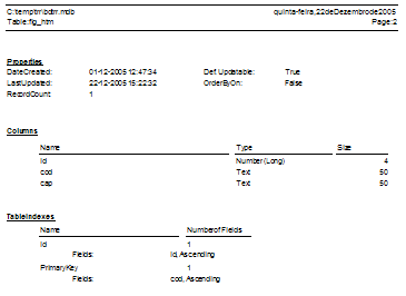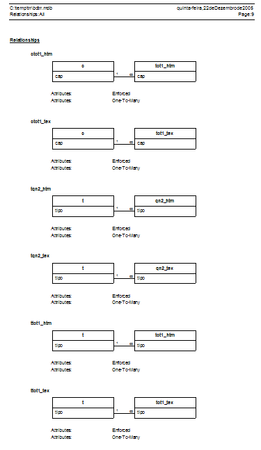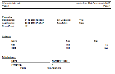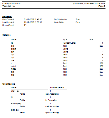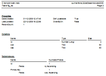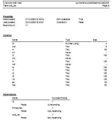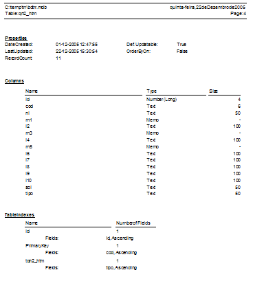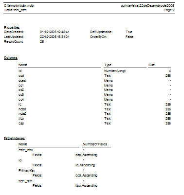 A base de dados 'Access' (bdtrr.mdb) tem a seguinte estrutura: