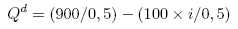 Q^{d}=\left( 900/0,5\right) -\left( 100\times i/0,5\right)