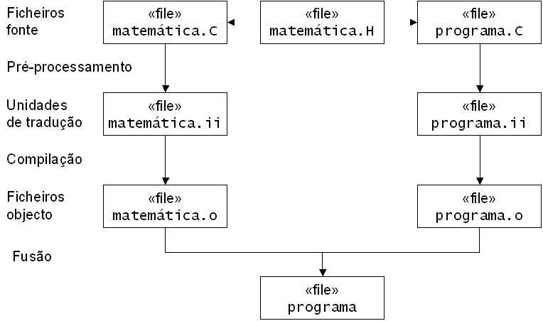Note-se que a compilação age sobre um único ficheiro!  Daí que se fale em compilação