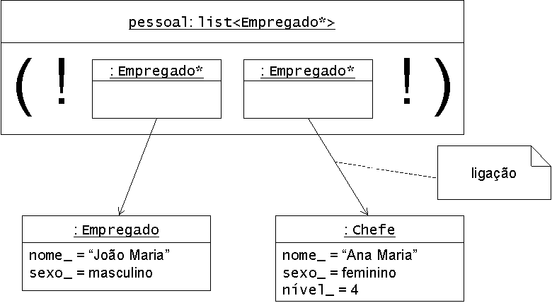 pessoal.push_back(new Empregado("João Maria", masculino));pessoal.push_back(new Chefe("Ana Maria", feminino, 4));...