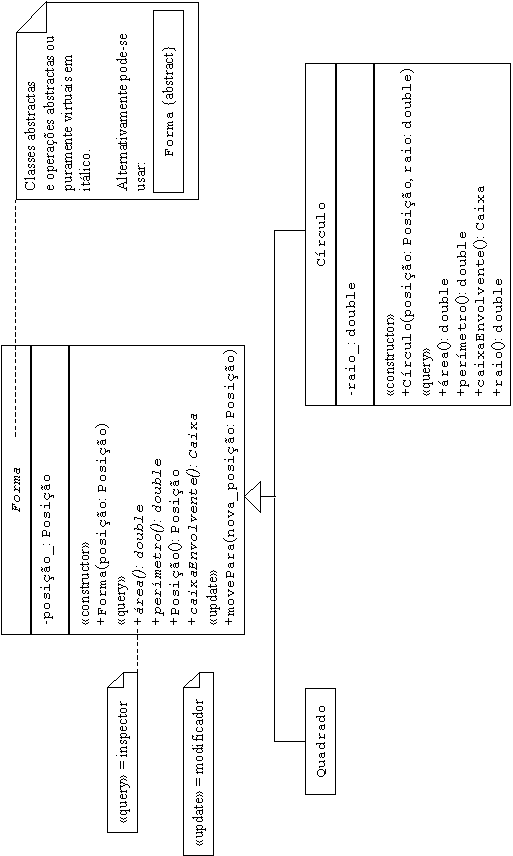 Note-se que o inspector do raio não é polimórfico. Com isso deixa-se uma mensagem clara a quem queira especializar círculos: não deve especializar esse inspector. O método fornecido é definitivo e não pode ser especializado.