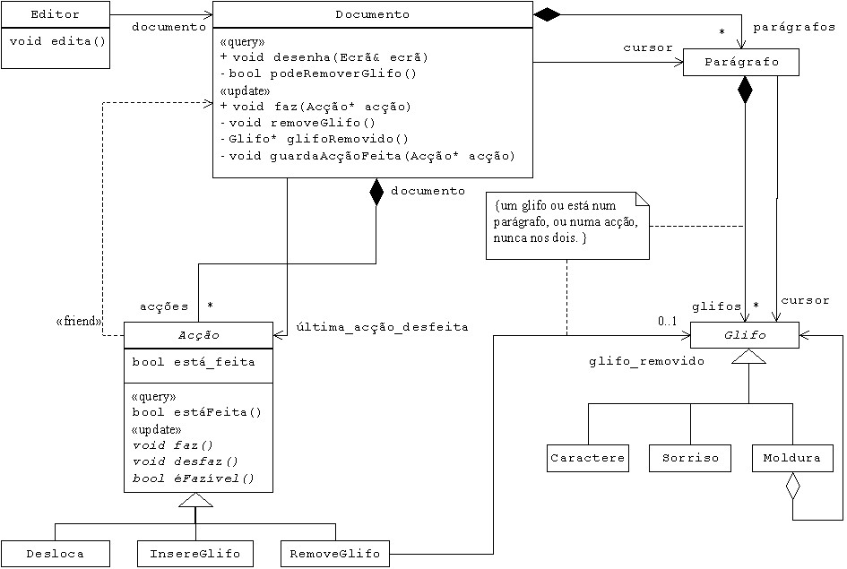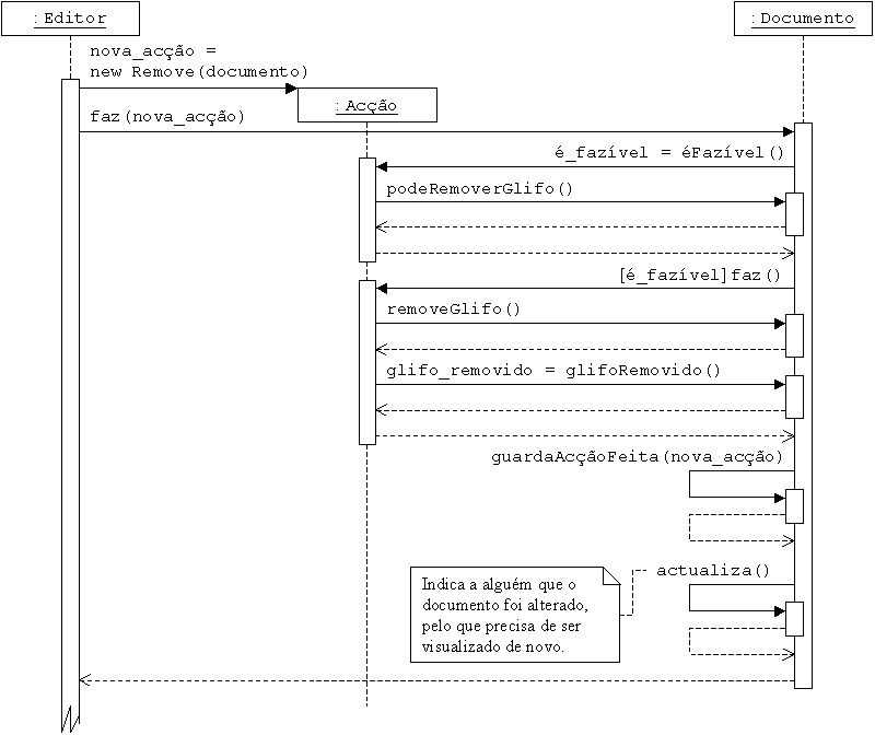 Diagrama de classes do Trabalho Final e diagrama de sequência da realização de uma acção de remoção de glifo.